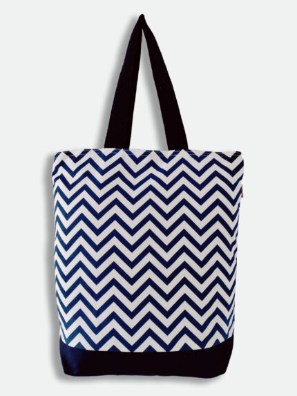 The bag is made from durable material such as canvas cotton, ensuring its longevity and ability to carry various items.